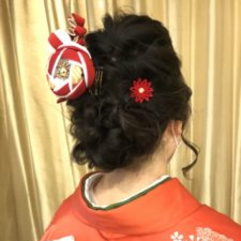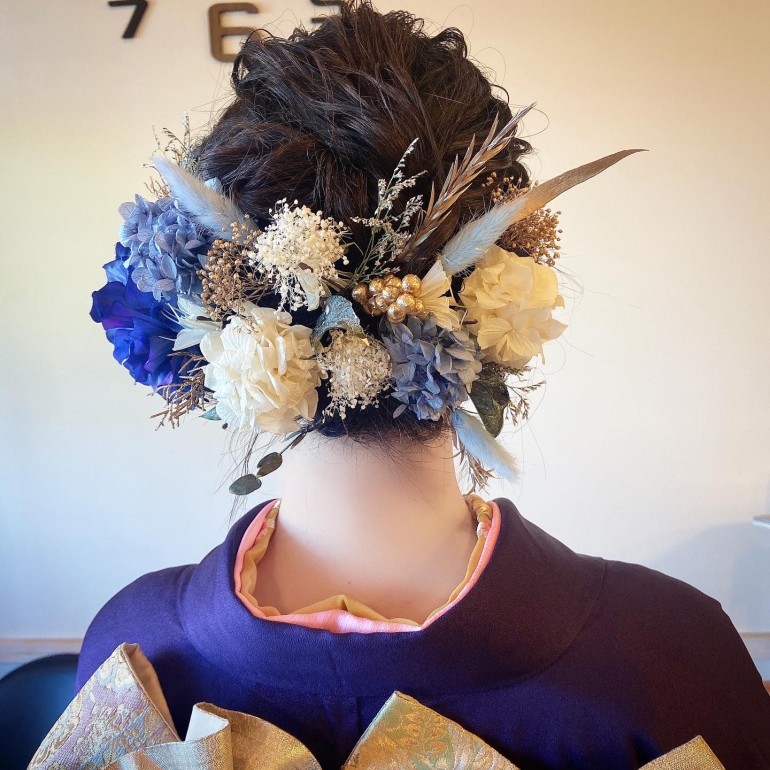 こんにちは! 成人の皆様、ご成人おめでとうございます✨🎊㊗ 本当に今年は無事に成人式を行うことが出来て良かったですね❁⃘*.゚ (image) 肩に少し着くくらいの髪の長さのお客様ですが、アップ