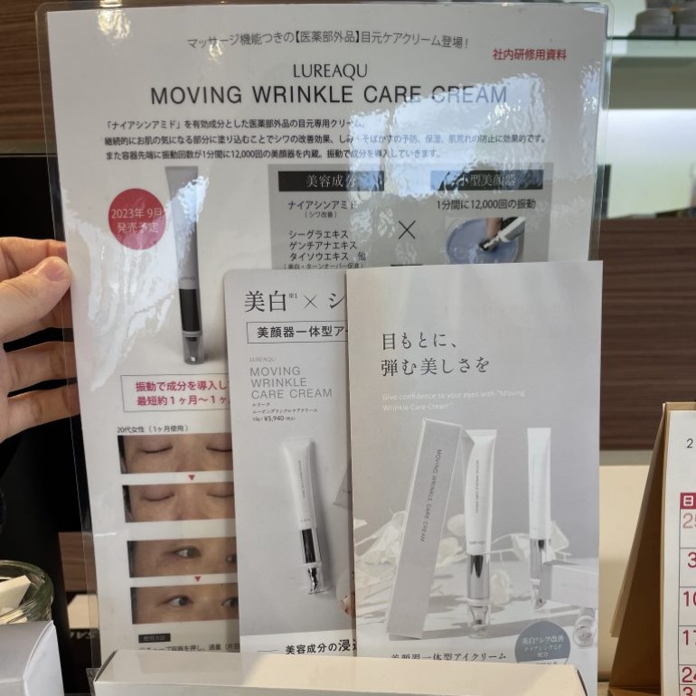 美顔器一体型アイクリームで有名なルリークのムービングリンクルケアクリームが入荷しました\(^o^)/ こちらのアイクリームはなんと美顔器内蔵アプリケーターとなっていますので、肌に触れるとすごく振動がきま