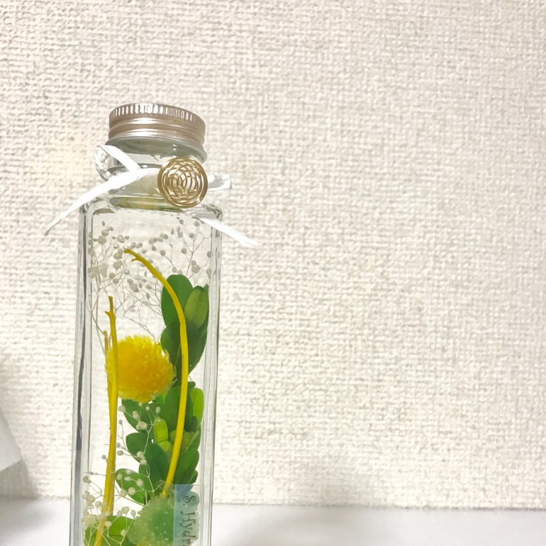 こんにちは七原です^^ お客様から素敵な手作りハーバリウムを頂きました゚・*:.。❁ 瓶の中には色々な種類のプリザーブドフラワーが入っています✨ 前回来ていただいた際にハーバリウムを作っているというお話を
