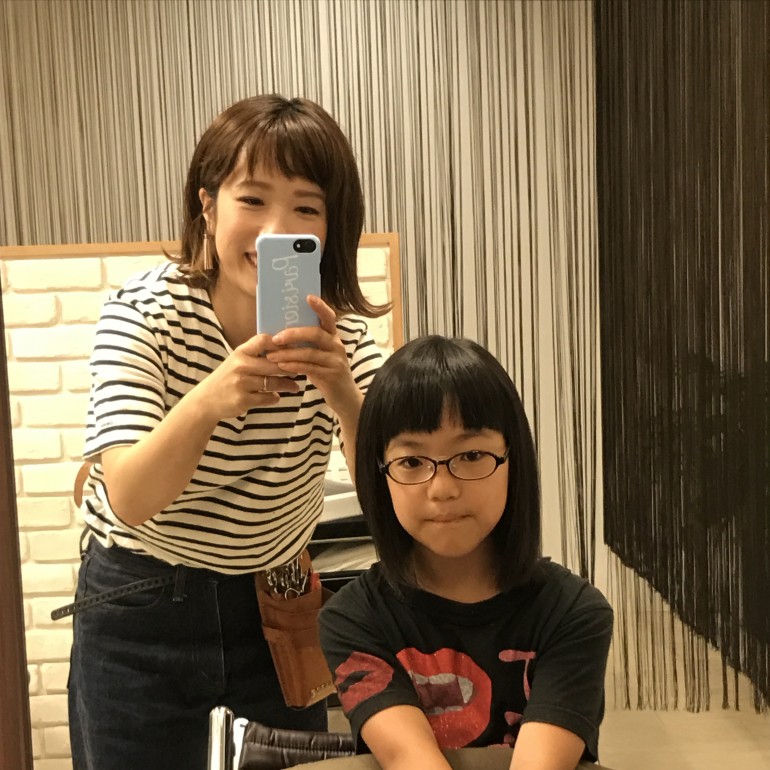 こんにちは七原です^^ 本日もバッサリカットしてヘアドネーションして頂けました😊 サラサラ健康毛ですね☆彡.。 (image) 肩下でカット✨ (image) 一緒にパシャリ^^ (image) すっきり可愛くな