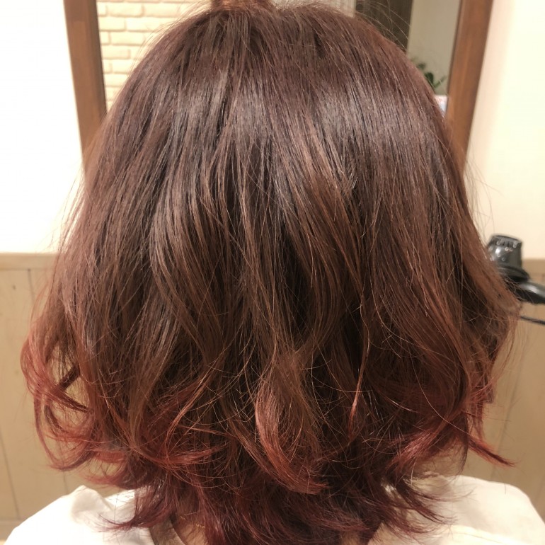こんにちは!青木です👧🏾👧🏾 高校のお友達が大学卒業式とゆうことで カラーをしにきてくれました(^^)/ 元々毛先が明るかったので 色を入れてみようとゆう事になり 赤色を入れた結果。。 (