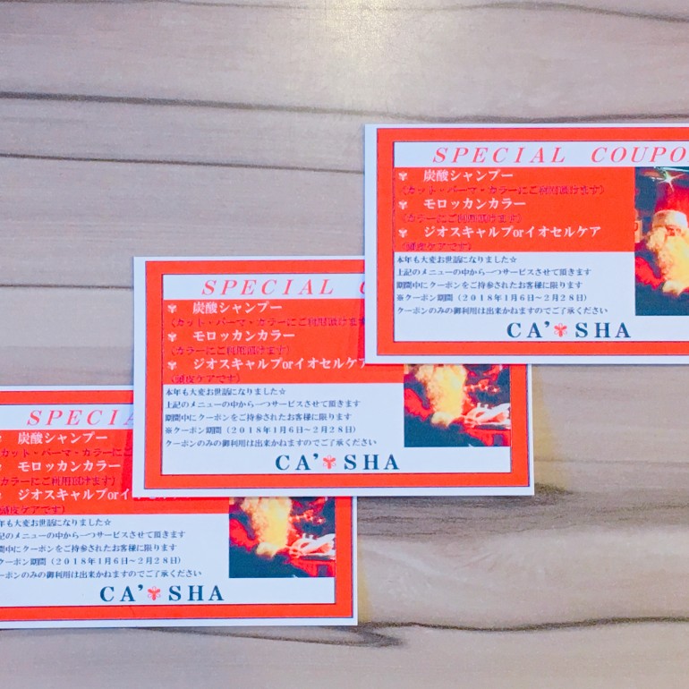 プレゼント中です! こんにちは☆ 牧野です(^-^) 12月に御来店頂いたお客様に年明け1・2月に御利用頂けるスペシャルクーポンをお配りさせて頂いております! (image) ・炭酸シャンプー ・モロッカンカラ
