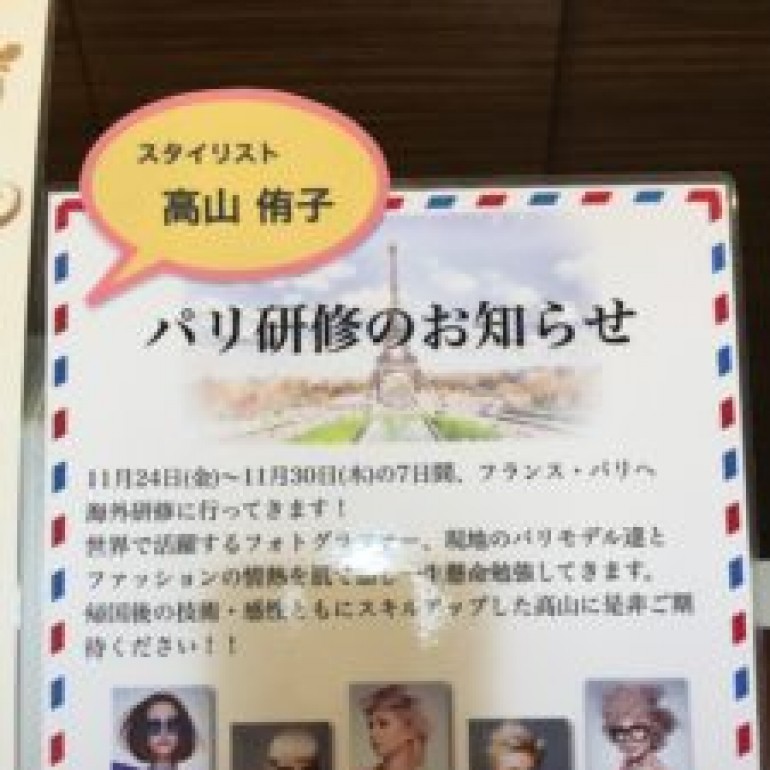 こんにちは!高山です😊 今月の末に、一週間お休みをいただいて フランスのパリに行かせてもらいます❗️ (image) 向こうのモデルさんで撮影をさせてもらう研修で、勉強に行ってきます❗