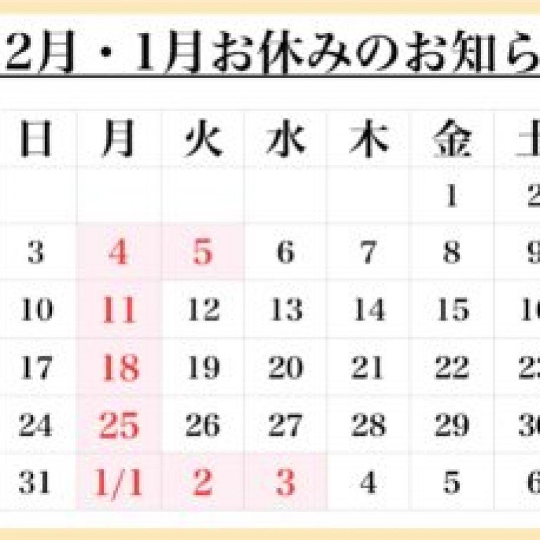 こんにちは、スタイリストの山田です☆彡 年末12月の営業のお知らせです!! (image) 12月は混み合う時期でもありますので少し変動的ですが毎週月曜日と5日(火)がお休みとなります。