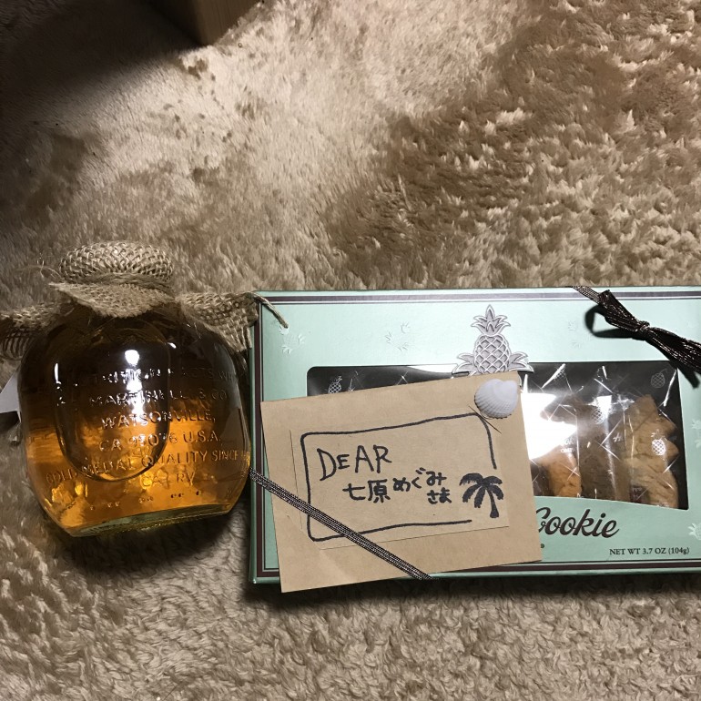 こんにちは七原です(ˊᵕˋ) 今日は先日ハネムーンにハワイに 行ってきたお客様から お土産とお手紙いただきました✨ 左のびんに入っているのはリンゴジュースで、とってもオシャレですね✨