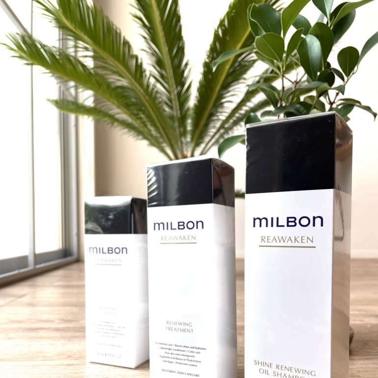 グローバルミルボンから新ラインが登場しました👏 REAWAKEN[リアウェイクン] ツヤの低下、パサツキという髪の年齢変化に対応。大人髪の毛流れを整え、美しいツヤ、うるおいを呼び覚まします。 (image)