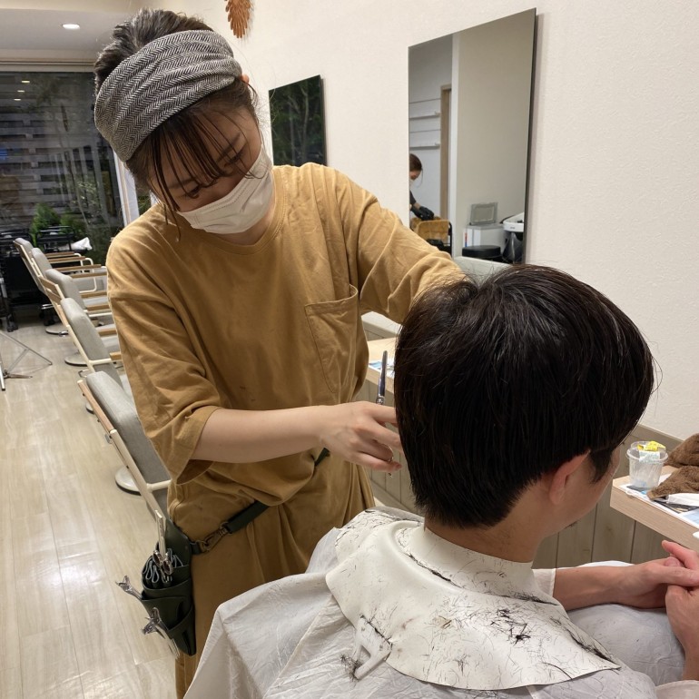 こんにちは!青木です👮♀️ 吉川さんの店長初カットです✨✨ (image) 初めはドキドキしていましたが 段々と慣れた手つきに😊 (image) すごく丁寧に仕事をしてくれるので とっても上手な仕上がり