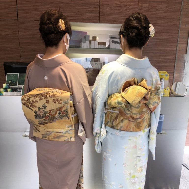 (image) こんにちは😃 先週の日曜日に 結婚式に出席のお客様の 着付けをさせて頂きました。😊 お母さんの帯は祖母から 娘さんの帯はお母さんから 代々受け継がれる帯も とても素敵だと思います