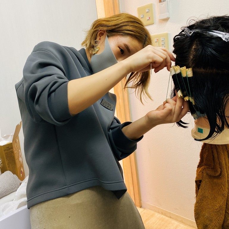 こんにちは!青木です!👩🏽🦱👩🏽🦱 パーマの練習に入ったゆいか氏!! とてもいい線で上手にできております💡 (image) 自分も頑張っている姿を見ながら 復習しながら勉強させてもらっていま